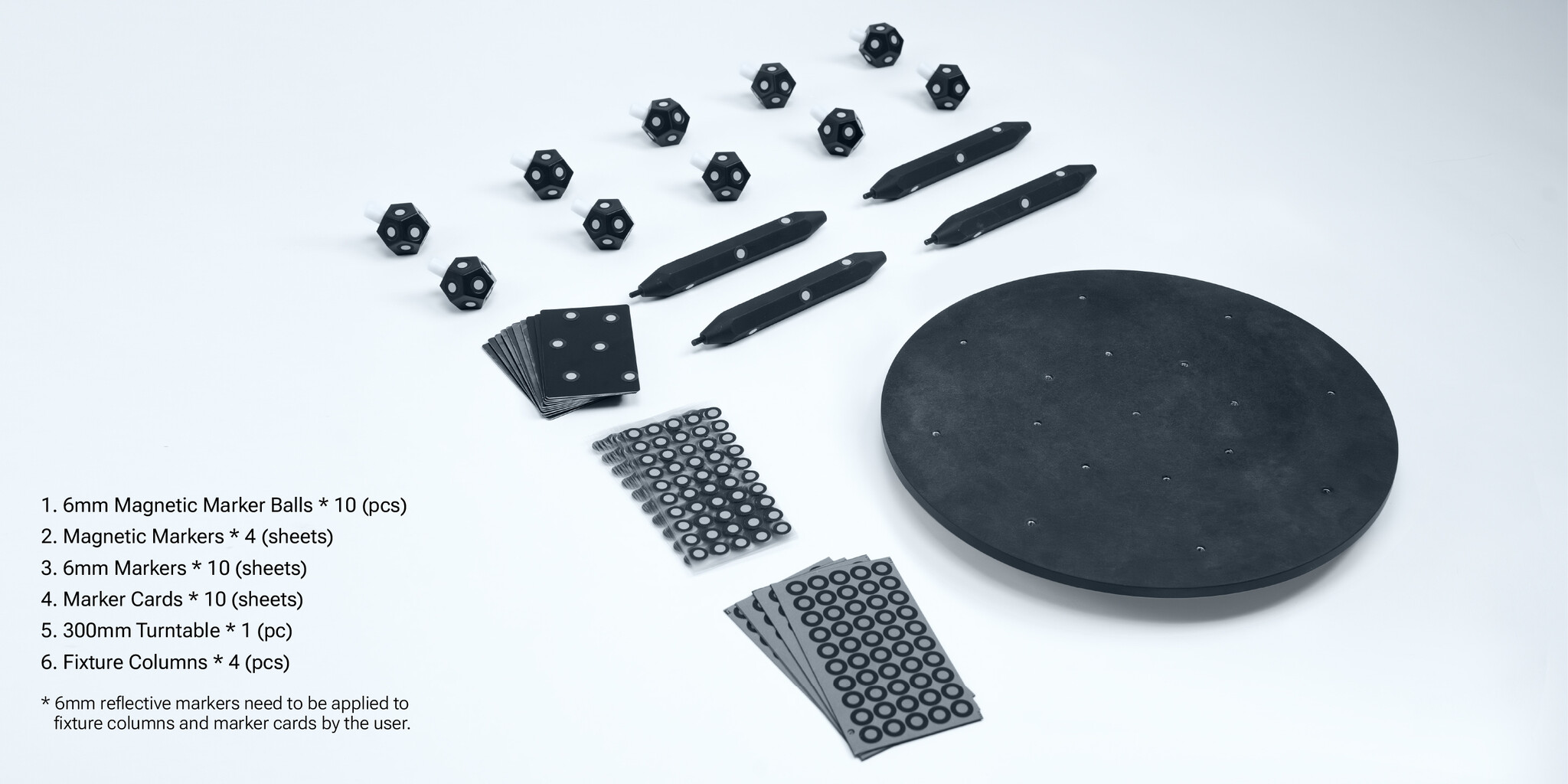 De verschillende types markers bieden stabiele en nauwkeurige tracking bij 3D-scans. Perfect voor grotere of onregelmatige objecten.