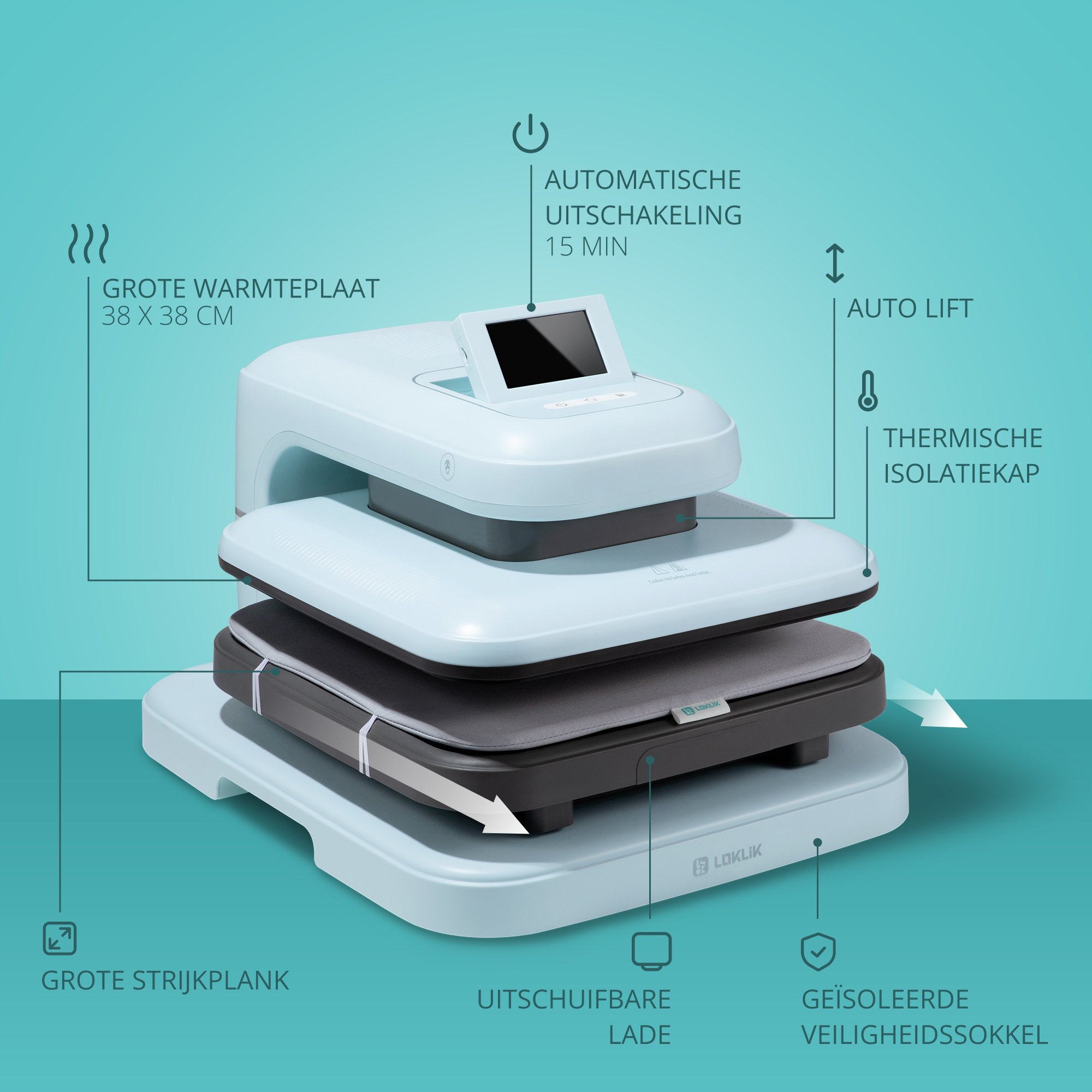 De slimme automatische hittepers voor professioneel en efficiënt werk. Met automatische druk- en tijdinstellingen behaal je keer op keer perfecte resultaten. Ideaal voor het produceren van grotere hoeveelheden.