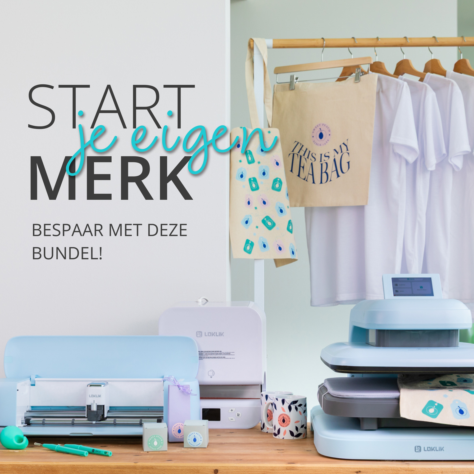 De starterpacks voor de LOKLiK ImPress™ Mini 3, Auto Tumbler Heat Press, ImPress™ Auto 2 - Smart en LOKLiK iCraft™ zijn inbegrepen in deze bundel.