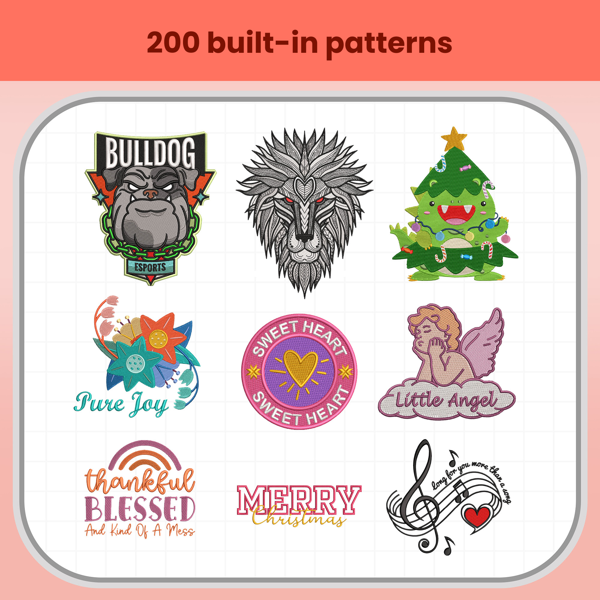 Hit the ground running with an extensive library of pre-loaded designs, including animals, florals, transportation themes, and decorative elements. Eight different font styles allow you to personalise any project with custom text. Perfect for learning the basics or quickly producing professional gifts and custom products.