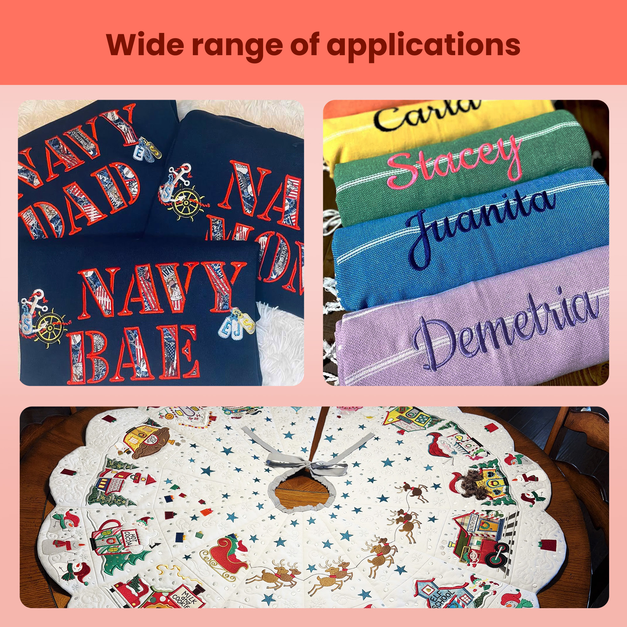 With four interchangeable hoop sizes (two 14 × 14 cm hoops, one 20 × 20 cm hoop, and one large 20 × 28 cm hoop), you have the flexibility to tackle projects of all sizes. From small patches and logos to large jacket backs and home décor items, the generous working area lets your creativity flourish. A large working plate is included to make it convenient to work with larger items.