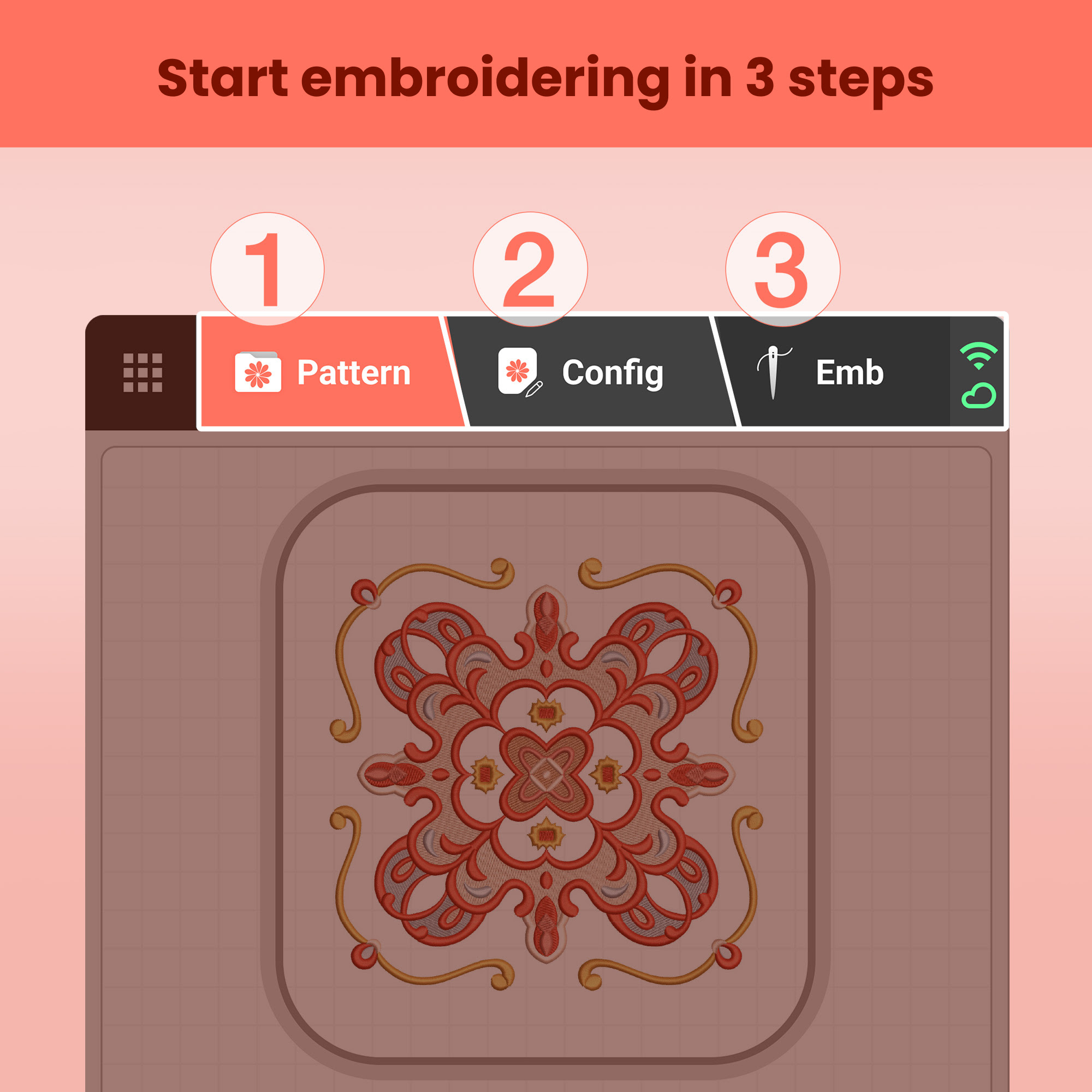 Navigate your projects with ease using the large, high-definition touchscreen that responds like a smartphone. Drag, resize, rotate, and edit your designs with simple touch gestures. Preview your work before you stitch, adjust positioning on the fly, and make real-time modifications. All from the intuitive interface that makes complex embroidery feel effortless.