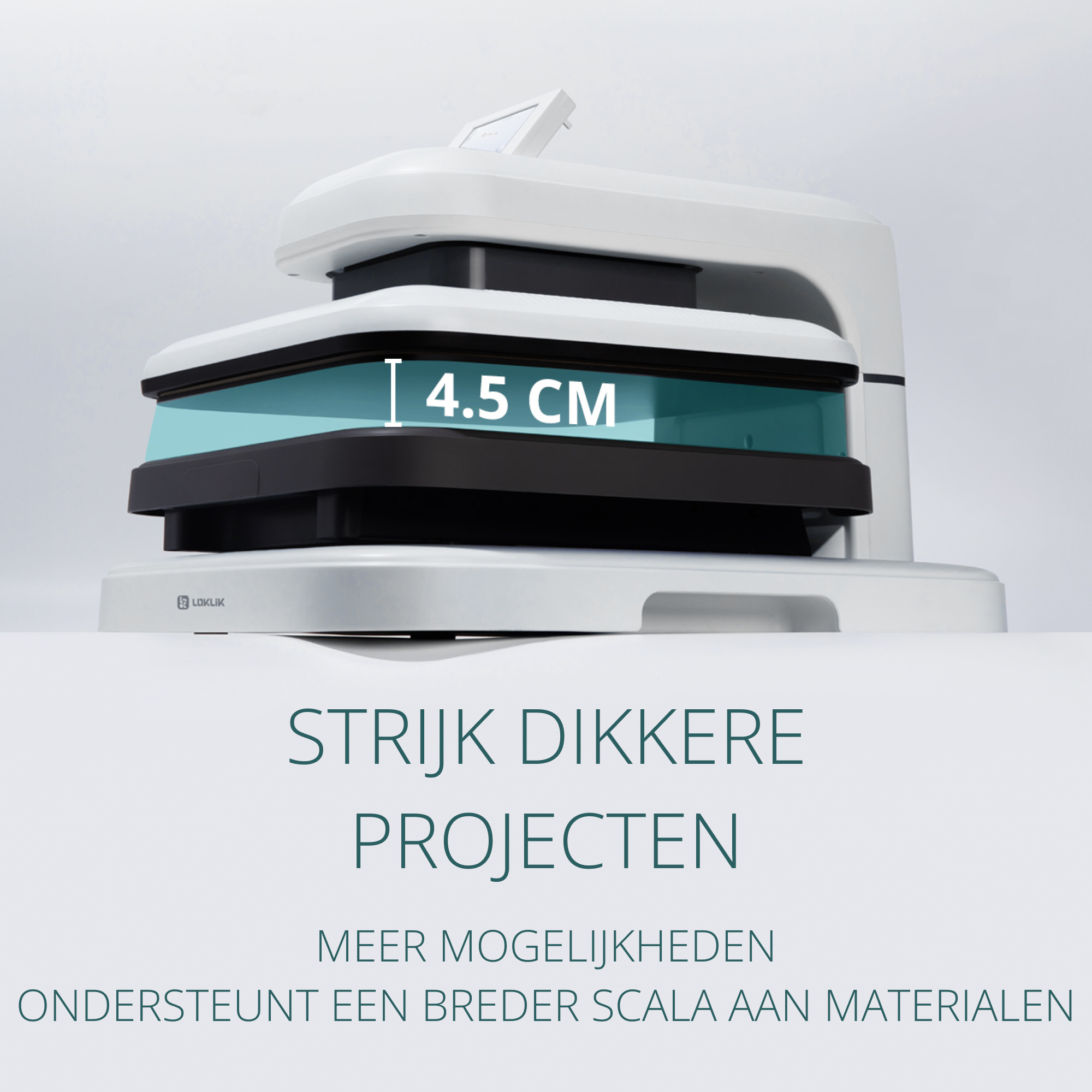 Werk met dikkere materialen: De ImPress Auto 2-Smart hittepers is ontworpen om automatisch consistente, gelijkmatige druk toe te passen op items met een dikte tot 4,5 cm (zonder de hittepersmat). Deze verhoogde hoogte (2 cm meer dan onze LOKLiK Auto Heat Press) stelt je in staat te werken met een breder scala aan materialen en oppervlakken, waardoor je creatieve mogelijkheden worden uitgebreid.