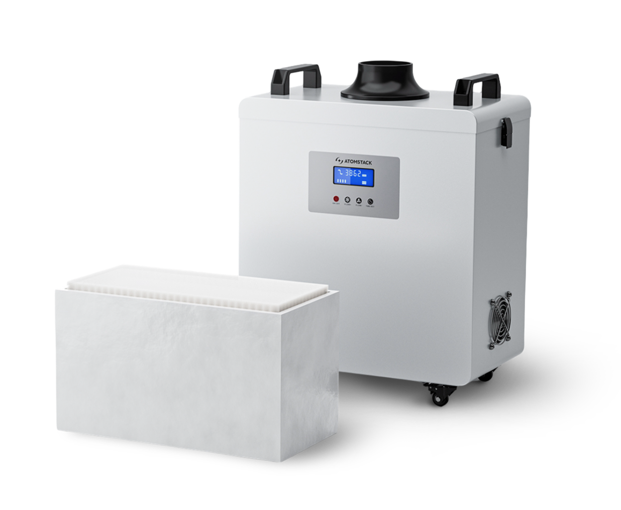 De AtomStack D4 is een professionele luchtfilter die zorgt voor een schone en veilige werkruimte. Speciaal ontworpen voor lasercutters en graveermachines, biedt hij een compacte, krachtige en stille oplossing tegen rook, geuren en fijne deeltjes en beschermt zo je gezondheid én je omgeving.