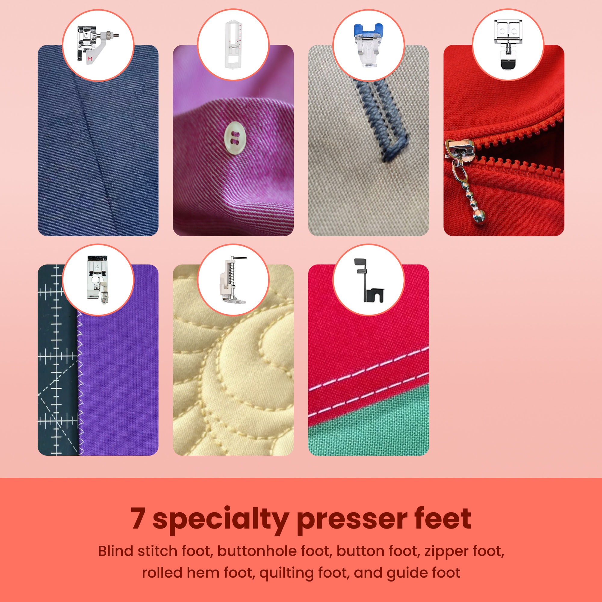 - Blindzoomvoet: maak onzichtbare zomen voor broeken, rokken en gordijnen