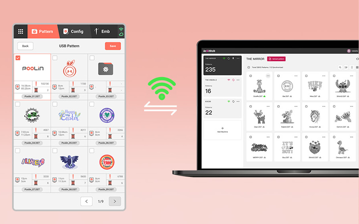 Import your own designs and images using the included free digital embroidery digital software. Export patterns in DST or DSB format and transfer them via USB drive or WiFi. Whether you're working with text, logos, photographs, or original artwork, the EOC06 brings your vision to life with precision stitching.