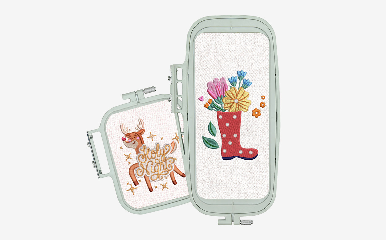 De PooLin EOC05 wordt geleverd met twee borduurramen voor uiteenlopende projecten: een raam van 10 × 10 cm, ideaal voor kleine ontwerpen zoals patches, monogrammen en decoratieve accenten, en een groter raam van 10 × 23,5 cm voor langere ontwerpen op zakken, handdoeken, banners en nog veel meer. Wissel eenvoudig van raam om perfect aan te sluiten bij jouw project.