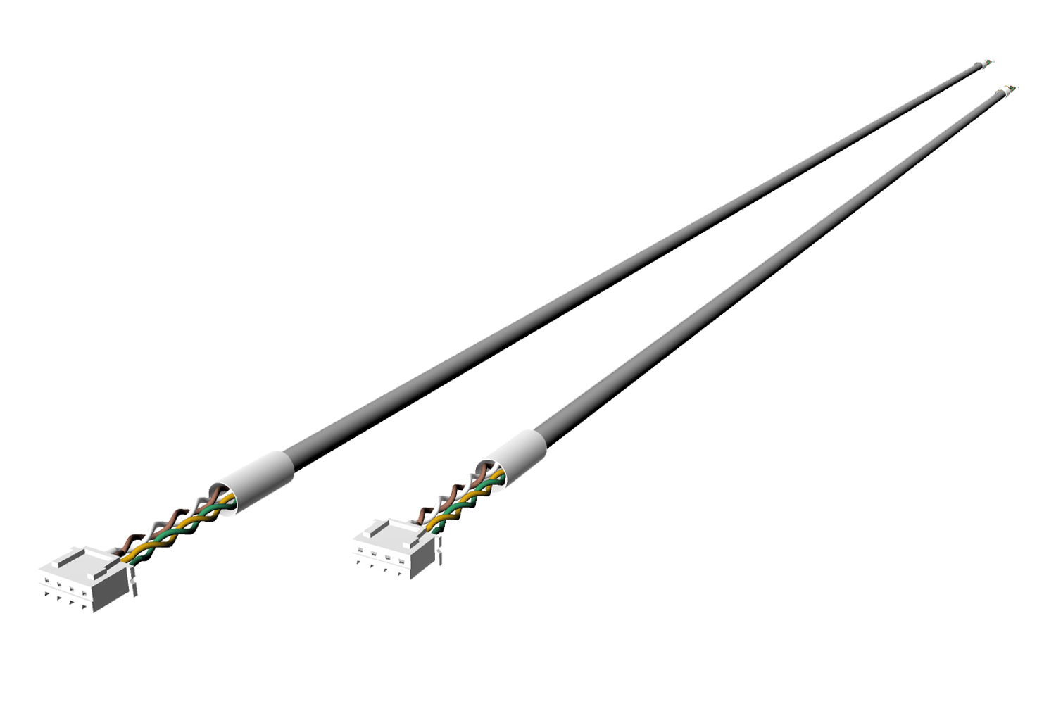 Set met beide flowsensorkabels die de feeders verbinden met de elektronica. Deze kabels zijn compatibel met UltiMaker S-serie printers en werken met alle feeder-versies (grof gekarteld, fijn gekarteld en dual-geared).
