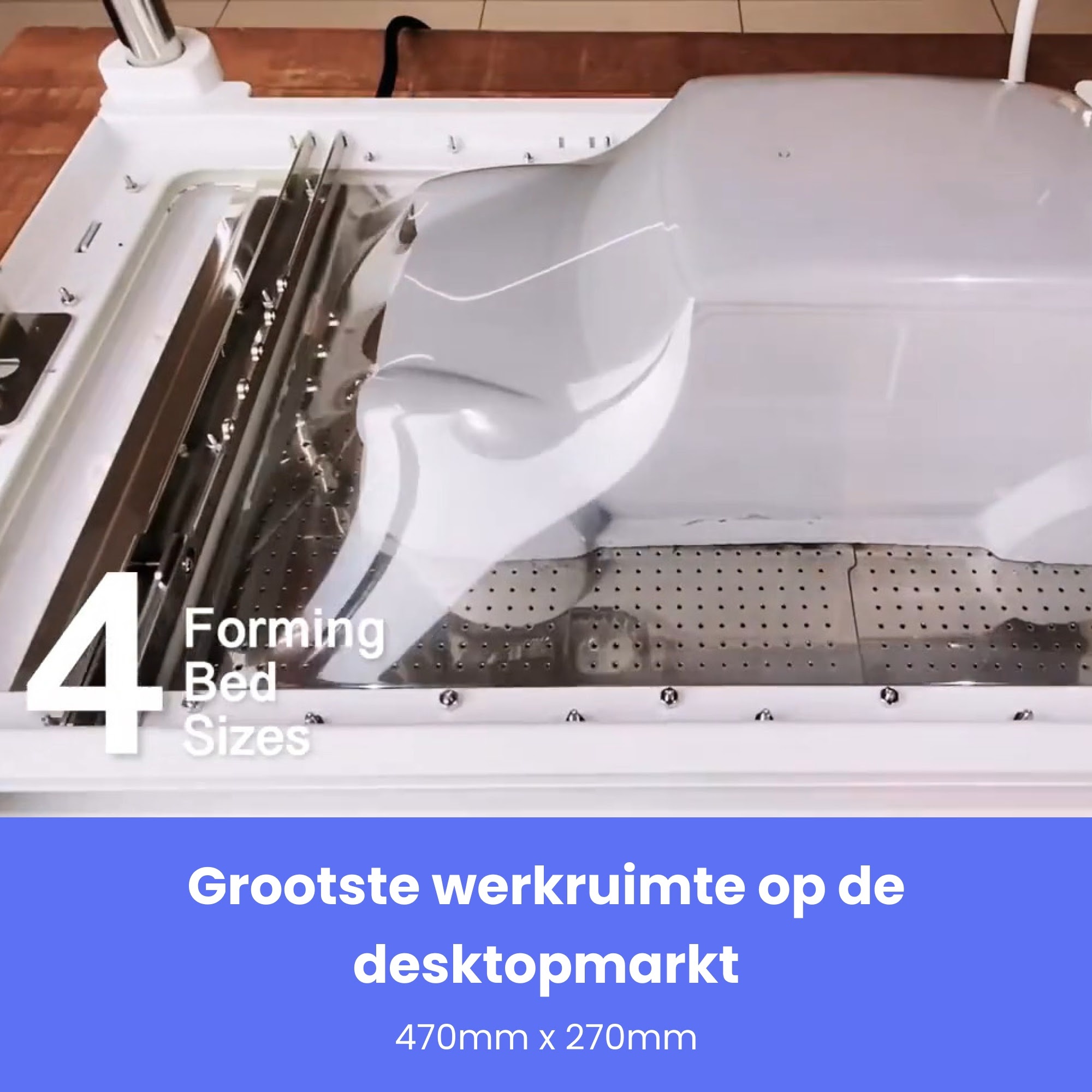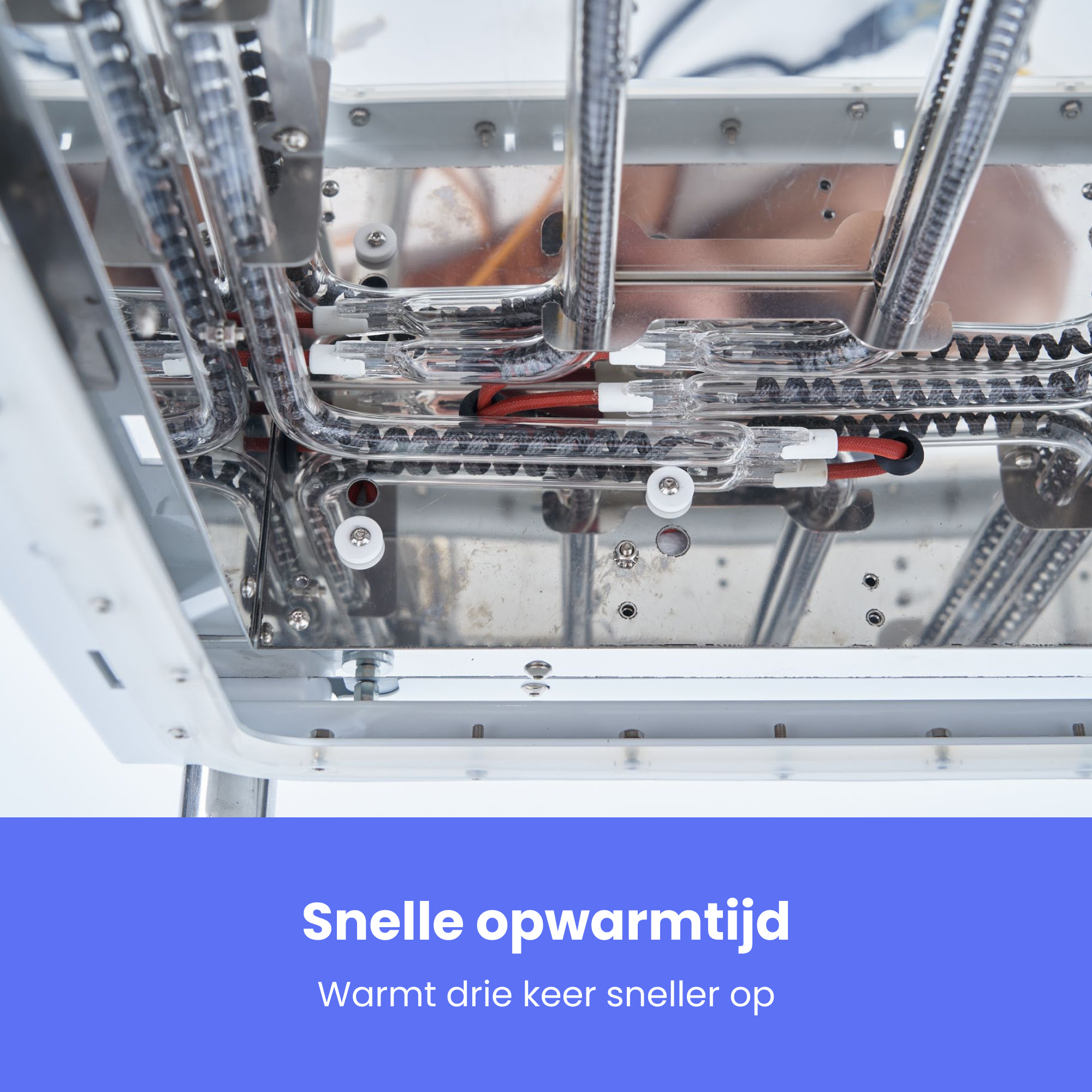 - Met de verwarmingsbuis van industriële kwaliteit verwarm je tot 3 keer sneller dan andere! De verwarmer zorgt voor een uitstekende temperatuuruniformiteit waardoor je de beste vormingskwaliteit bereikt.