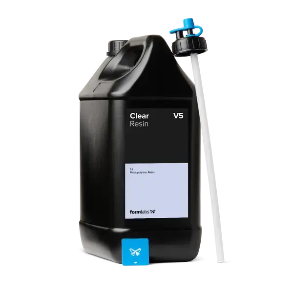 Clear Resin V5 is een nieuwe materiaalsamenstelling die gebruikmaakt van het Form 4-ecosysteem om drie keer sneller te printen dan de vorige versie, terwijl de helderheid, kleur en mechanische eigenschappen verbeterd zijn.