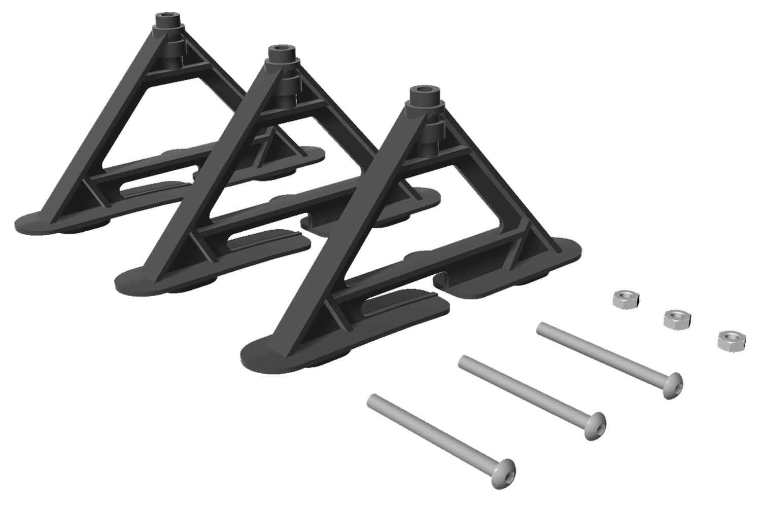 Deze set bevat drie plastic beugels, drie M3x35 bouten en drie M3 moeren om ze aan de mergers te bevestigen. De beugels schuiven en klikken vast in het bodempaneel van het Material Station.