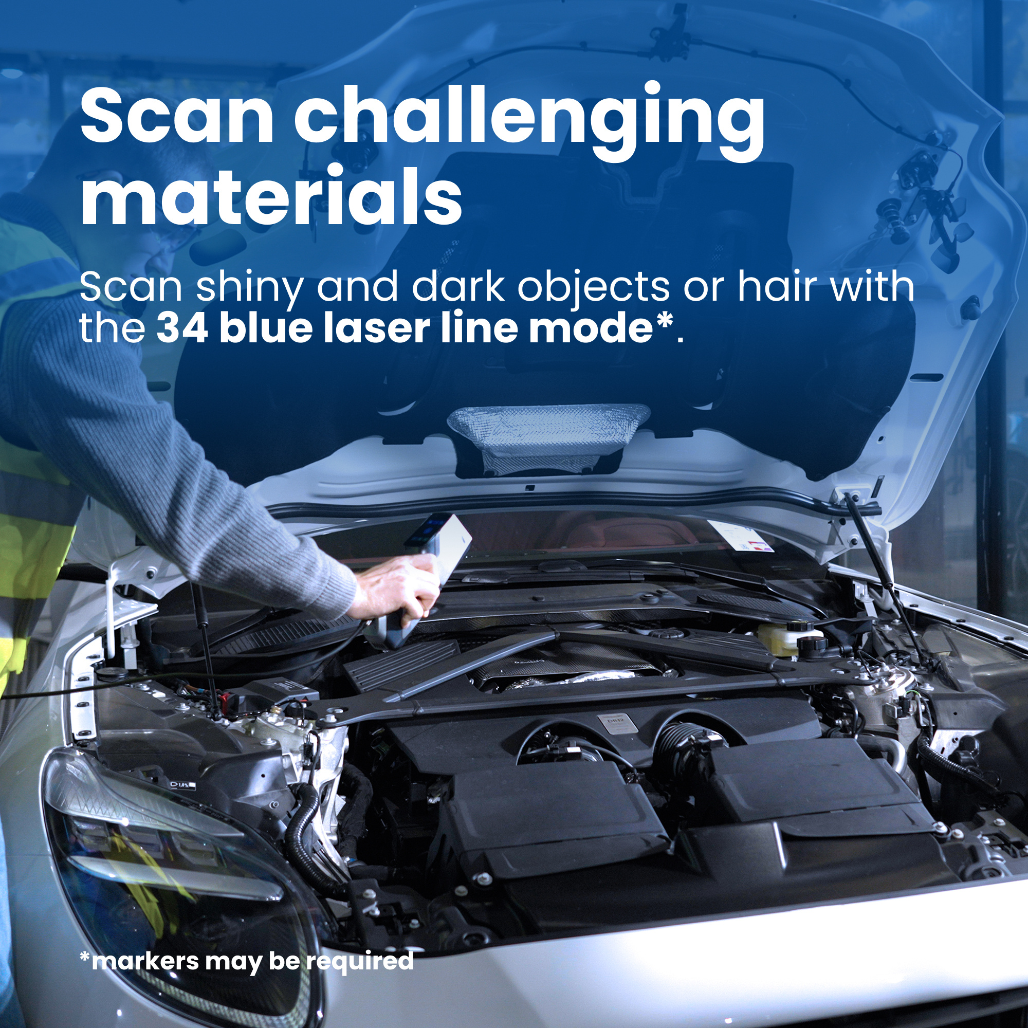 - 34 blauwe laserlijnen: Ideaal voor het scannen van grote objecten en complexe mechanische onderdelen.