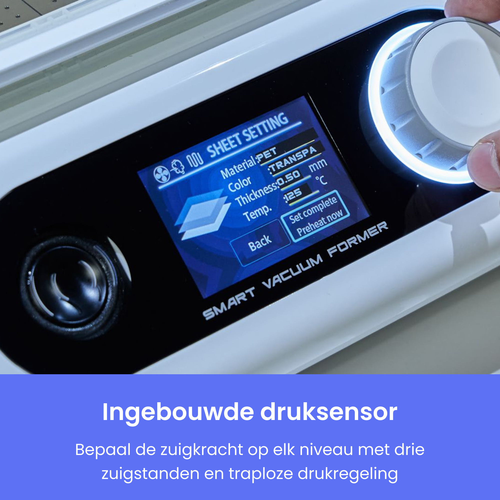 - Met de verwarmingsbuis van industriële kwaliteit verwarm je tot 3 keer sneller dan andere! De verwarmer zorgt voor een uitstekende temperatuuruniformiteit waardoor je de beste vormingskwaliteit bereikt.