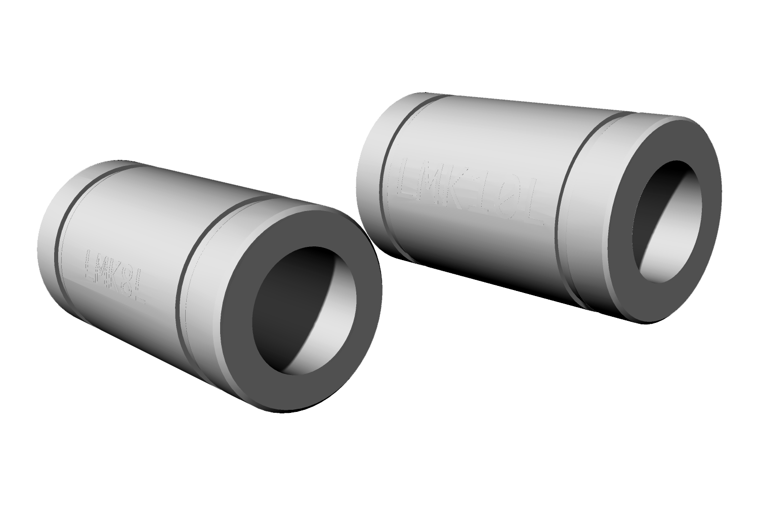 Pakket van twee lineaire lagers voor de printkop van de S-serie. Eén lager heeft een binnendiameter van 8 mm (voor de Y-printkopas), het andere een binnendiameter van 10 mm (voor de X-printkopas).