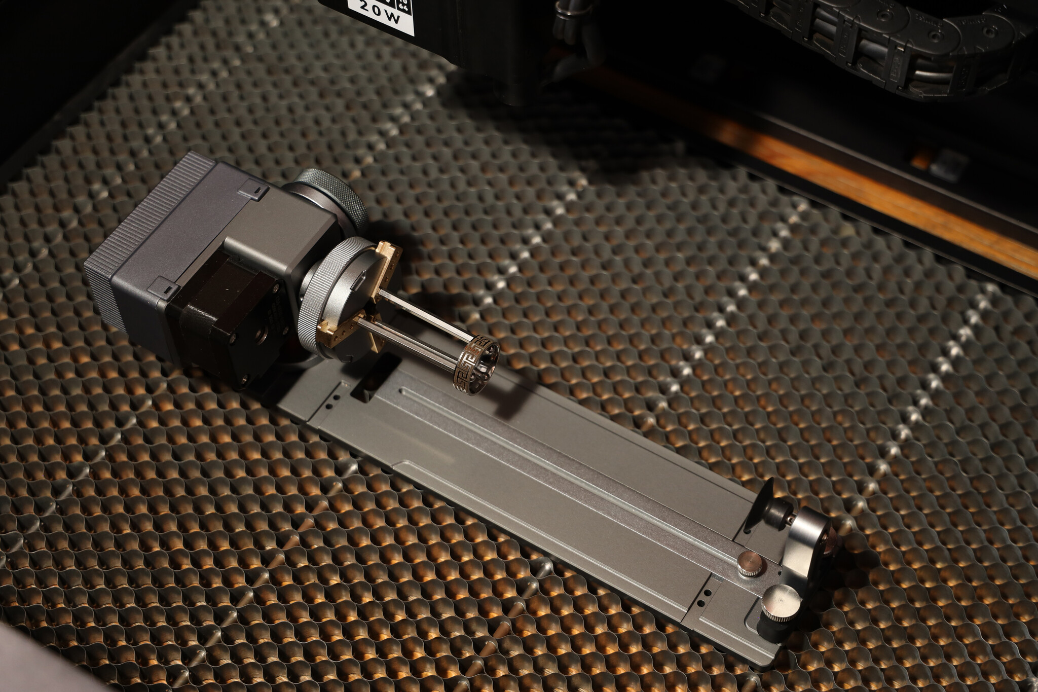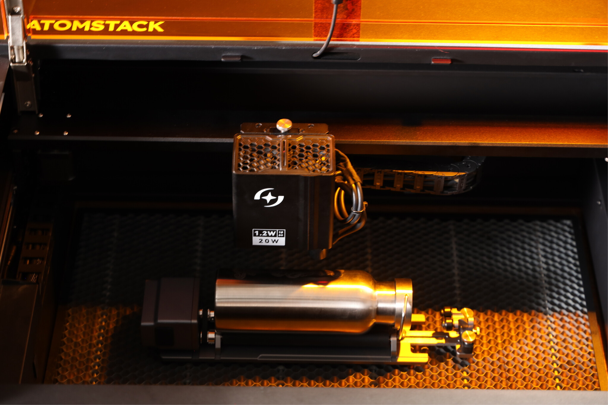 De R8 Rotary Chuck breidt de mogelijkheden van je AtomStack-lasersnijder uit.
