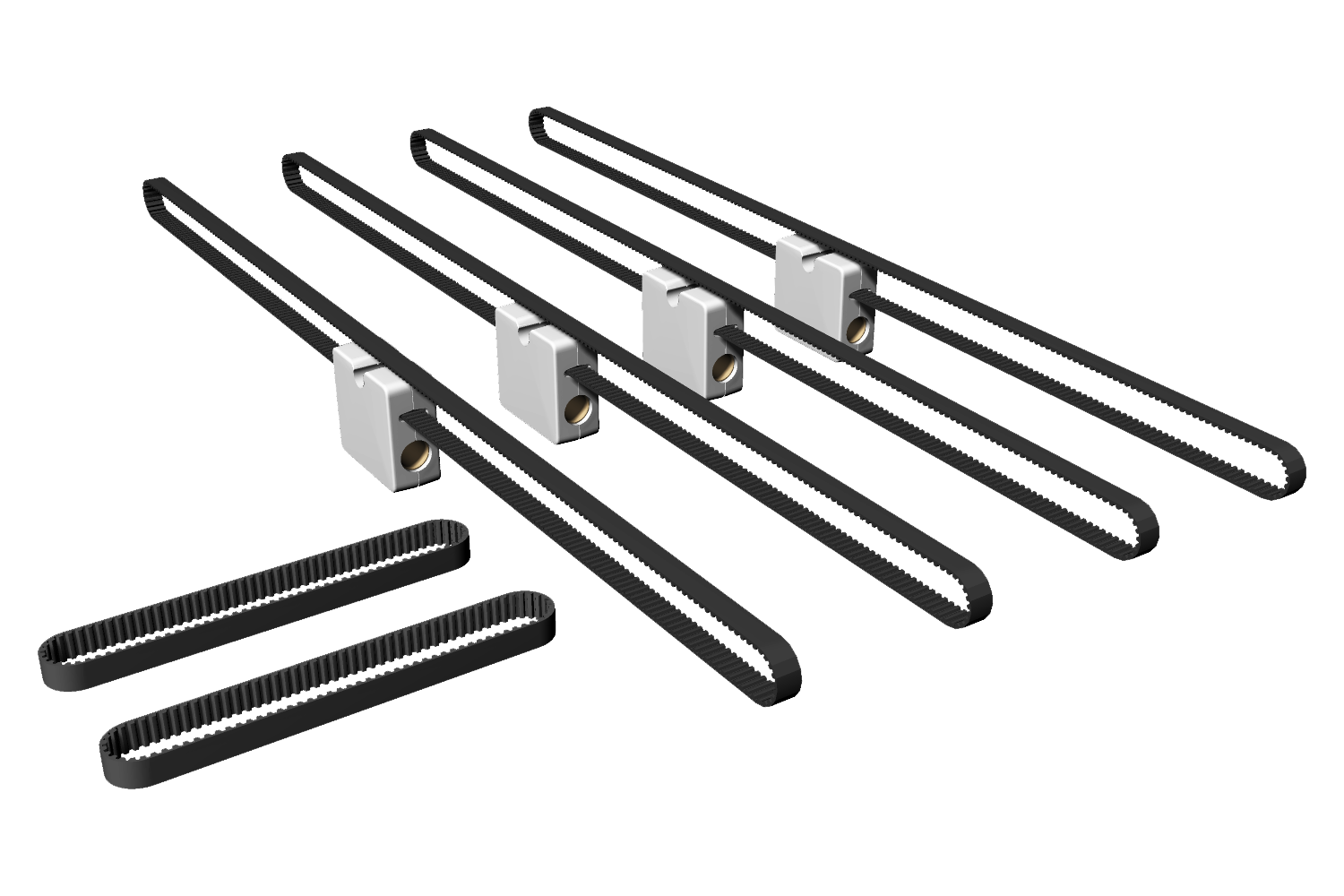 Pakket met riemen en glijblokken voor de UltiMaker 2-serie.