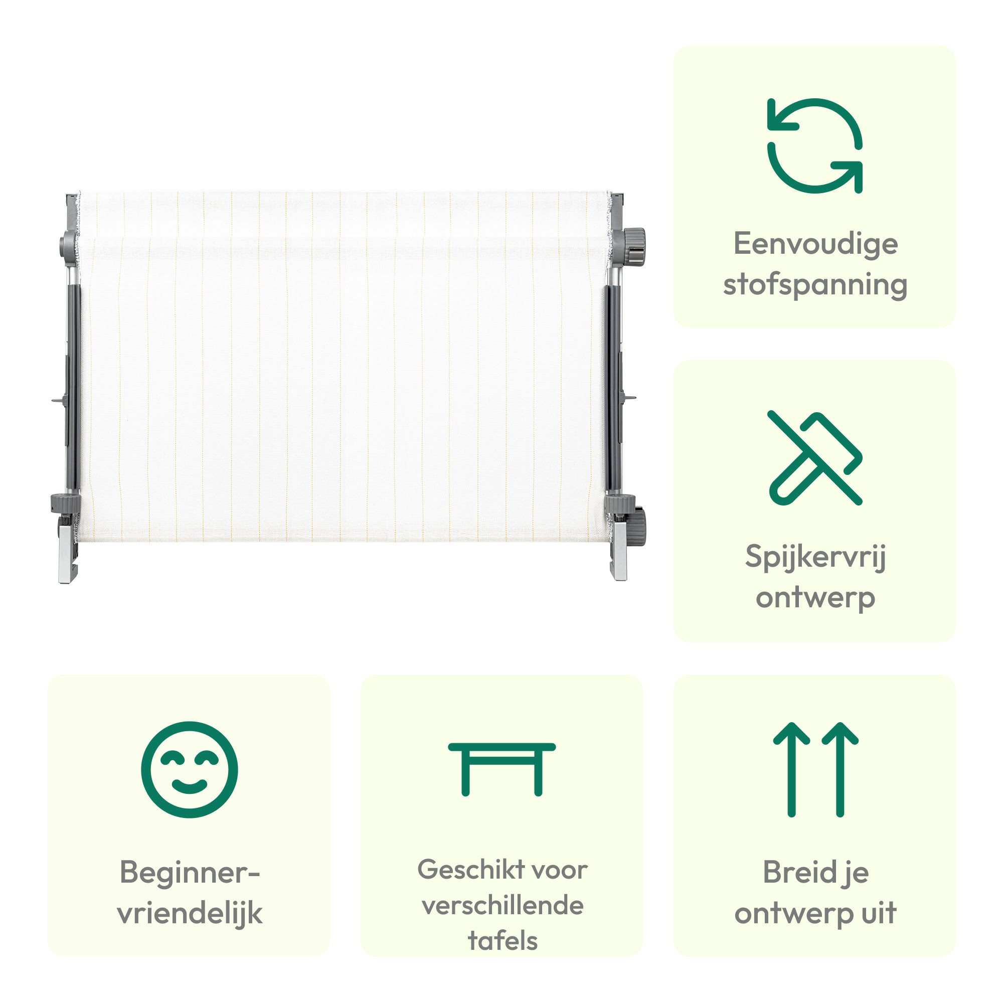 Het Clawlab Tufting Frame H1 staat stevig en wiebelt niet, iets wat traditionele houten tufring frames niet kunnen. Het nagelloze ontwerp heeft geen scherpe klemmen en is veilig voor je handen. Het geïntegreerde planetaire roll-off systeem maakt extra lange tapijten mogelijk die hoger zijn dan het frame.