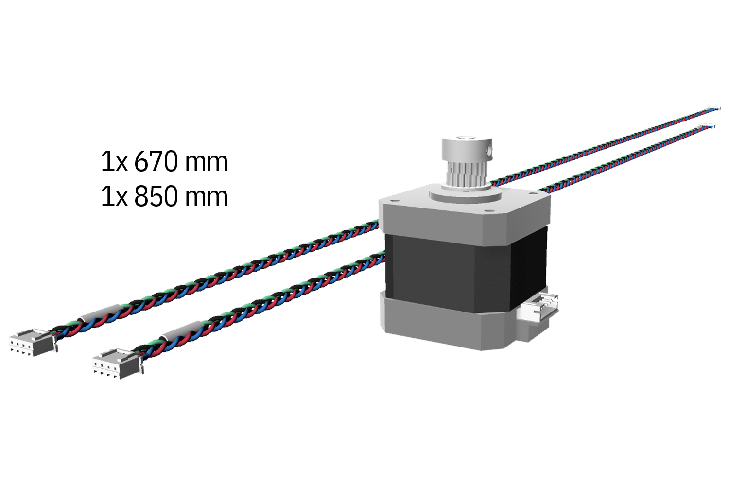 Deze servicekit bevat de 5 mm pulley en twee kabels: 670 mm voor de X-motor en 850 mm voor de Y-motor.