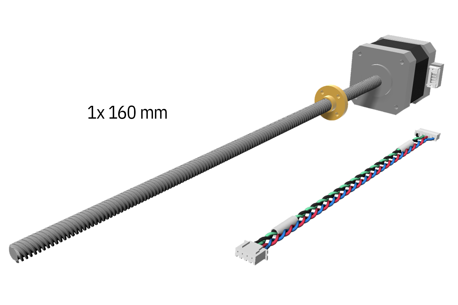 Deze set bevat de motor, de spindelmoer en de kabel van 160 mm om de motor op het mainboard aan te sluiten.